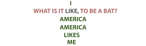 L'article de Thomas Nagel "Quel effet cela fait-il d’être une chauve-souris ?" et la performance de Joseph Beuys "j’aime l’Amérique et l’Amérique m’aime" sont deux œuvres distinctes qui, pourtant, se rencontrent et dialoguent sur le terrain de