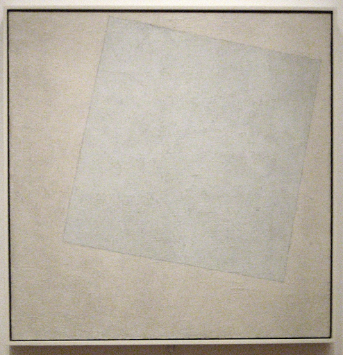 L'œuvre la plus connue du peintre russe Kazimir Malevich : « Carré blanc sur fond blanc » a été présentée pour la première fois en 1918 à Petrograd (Saint-Pétersbourg). Simple carré blanc sur un fond blanc cette peinture est considérée comme l'apogée du mouvement Suprématisme, qui visait à libérer l'art de toute référence à la réalité physique et à la nature.