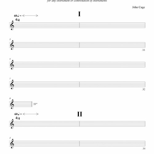 4′33″ est un morceau composé par John Cage. Il a souvent été décrit comme « quatre minutes trente-trois secondes de silence » mais qui est en fait constitué de sons de l'environnement que les auditeurs entendent ou créent lorsque le morceau est interprété.
