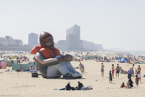 Protest Art ; réfugié gonflable et géant, une œuvre de Schellekens & Peleman